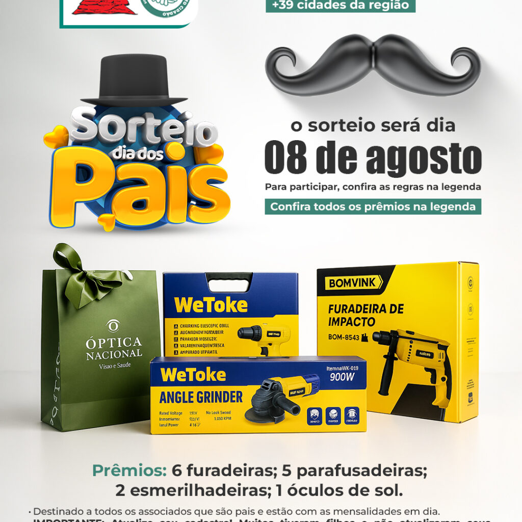 No dia 08 de agosto, realizamos um sorteio especial e exclusivo para os nossos associados que são pais, como forma de homenagem a quem carrega, todos os dias, o peso do trabalho e o orgulho de ser pai.