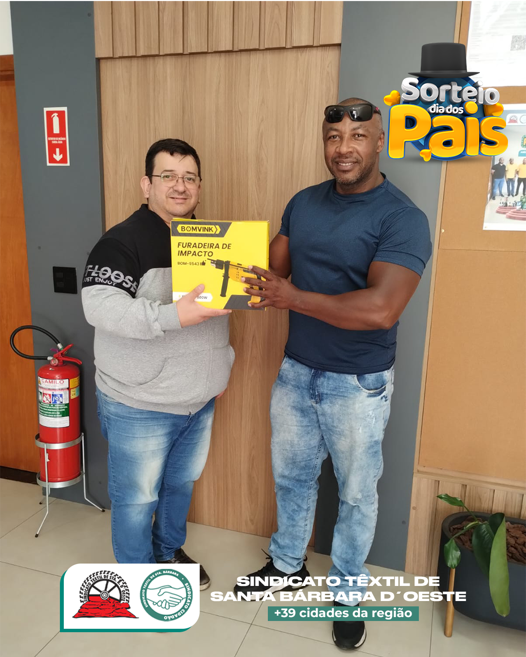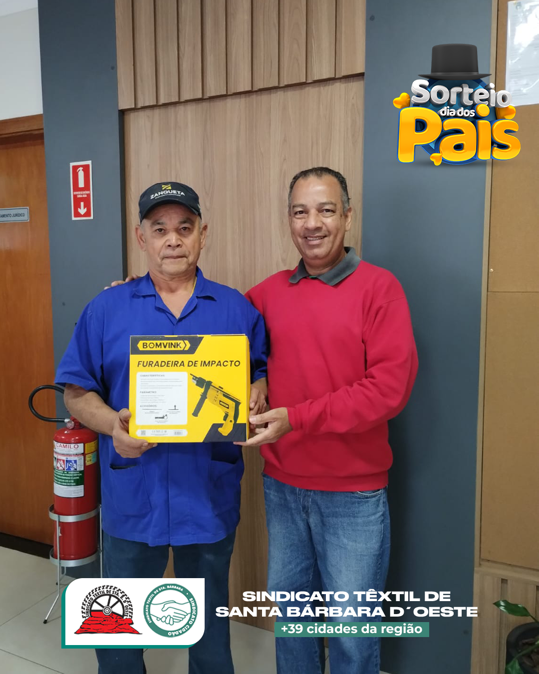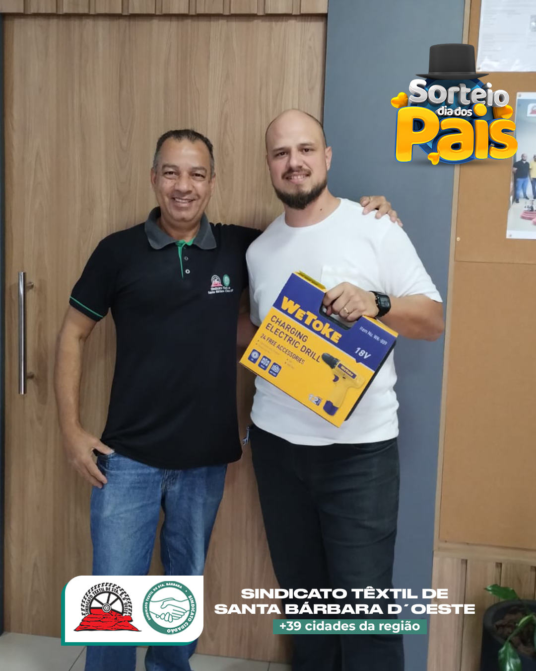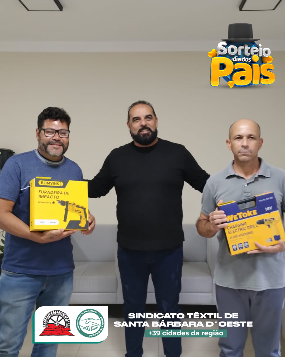 No Sindicato Têxtil de Santa Bárbara d’Oeste, o Dia dos Pais não passou em branco — passou com furadeiras, parafusadeiras, esmerilhadeiras e até óculos de sol top de linha! 😎🔧