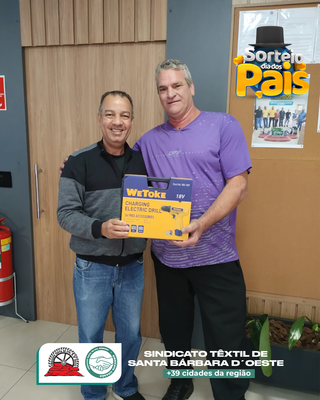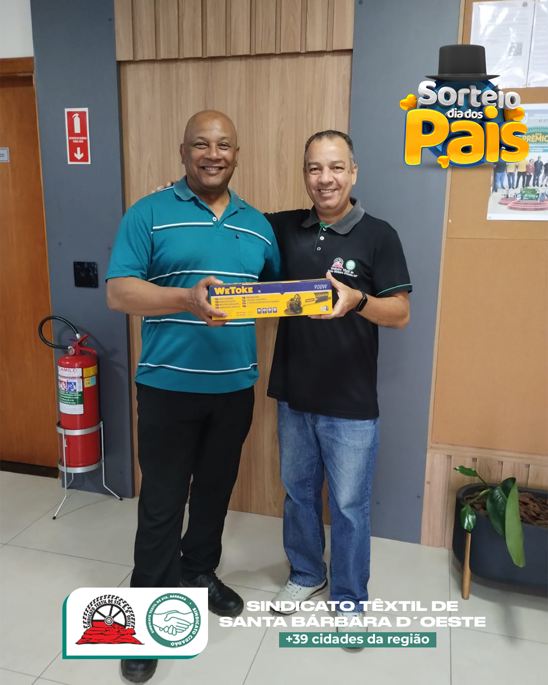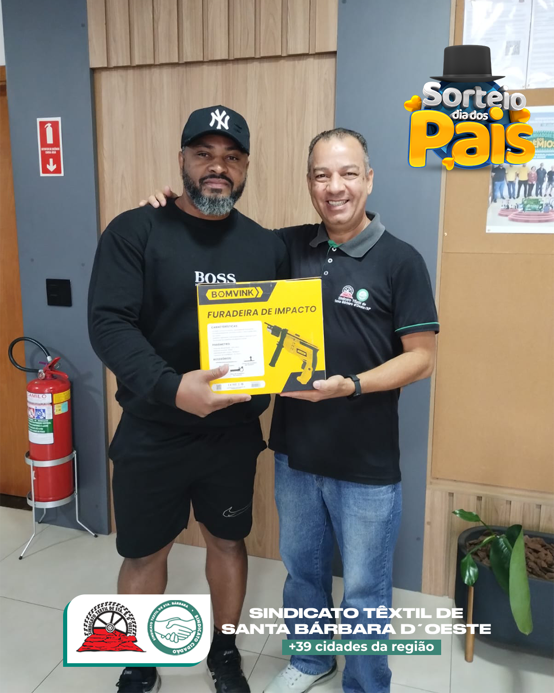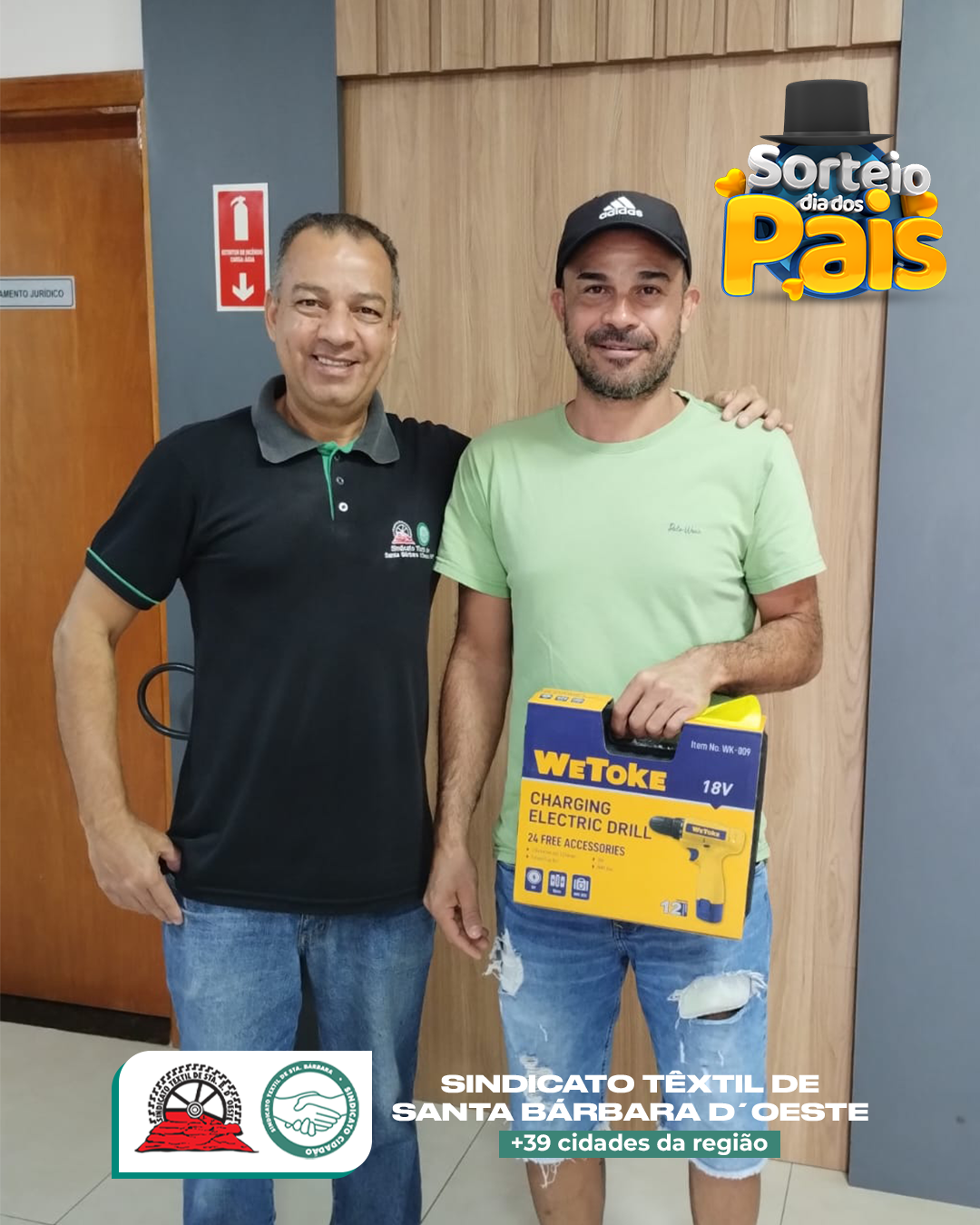 No Sindicato Têxtil de Santa Bárbara d’Oeste, o Dia dos Pais não passou em branco — passou com furadeiras, parafusadeiras, esmerilhadeiras e até óculos de sol top de linha! 😎🔧